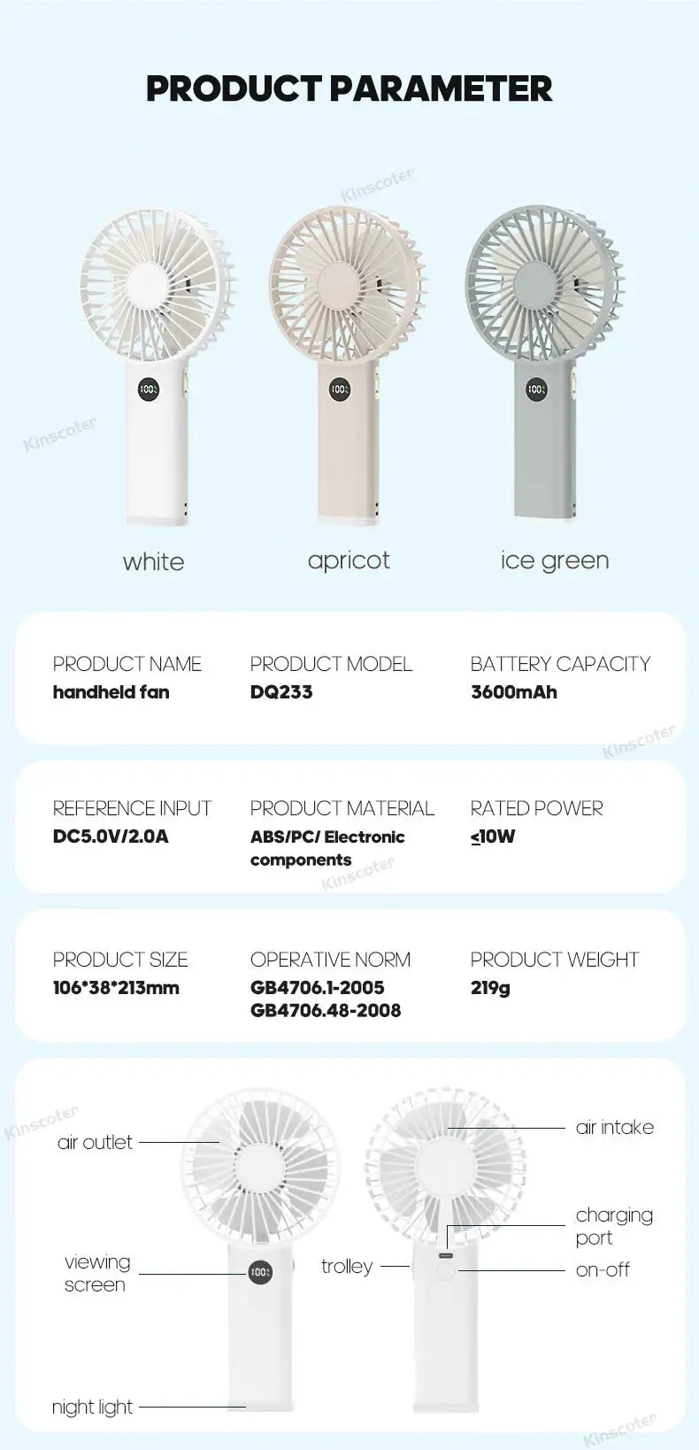 Take control of your comfort with the Premium 100-Speed USB Handheld Fan, featuring a digital display, infinitely adjustable airflow, and an impressive 3600mAh battery for long-lasting cooling.