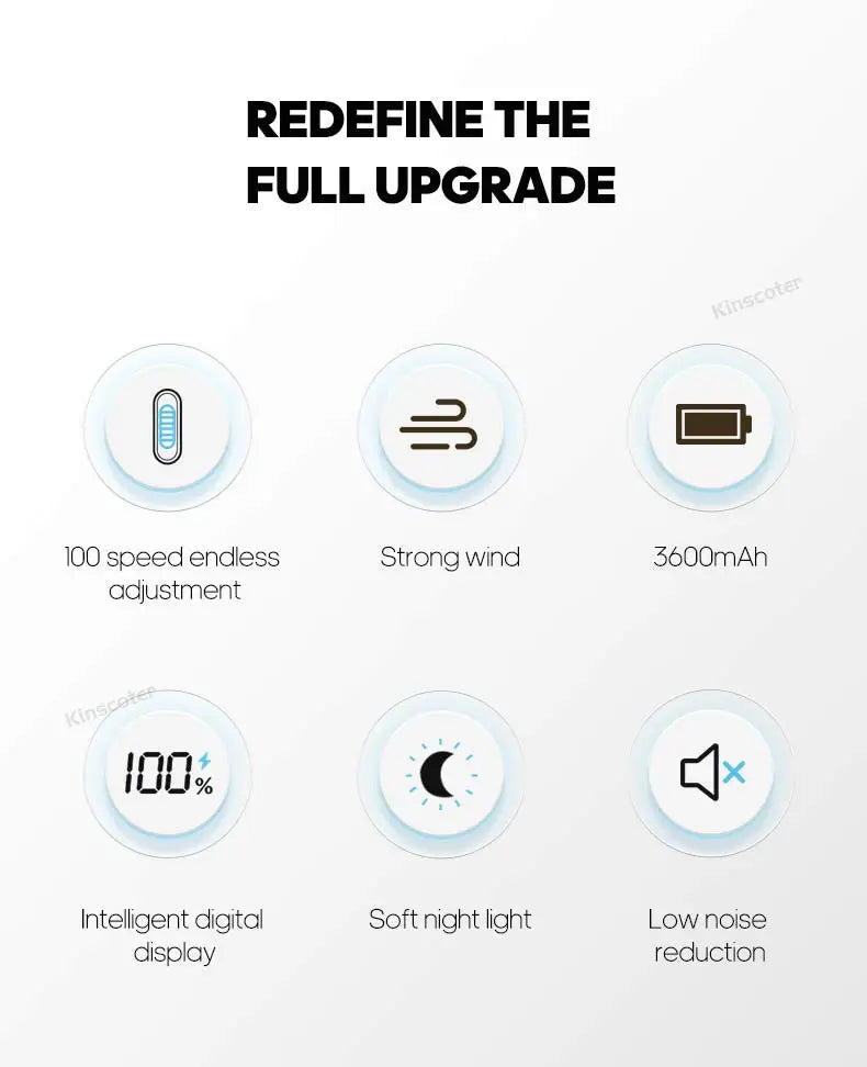 Unlike basic fans, this high-tech model gives you 100 levels of wind control, a built-in night light, and real-time power + speed indicators ā all in a compact, ultra-portable design. Whether you're traveling, working, or relaxing at home, this fan adapts to your needs with silent operation and strong airflow.
